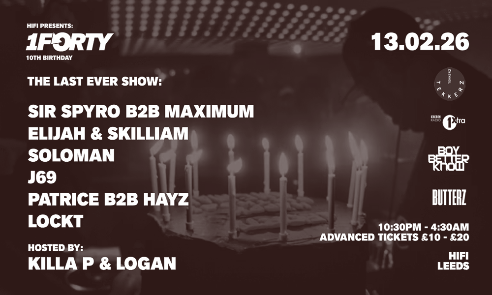 1Forty, one of the undergrounds most coveted multi-genre record labels celebrates their 10th birthday on a bitter sweet note, with it also being the last ever show. From the Mint Club eta in 2016-2019, to the HiFi and Wire era from 2021 to present, they've showcased special guests including Sammy Virji, Hamdi, Preditah, Holy Goof, […]