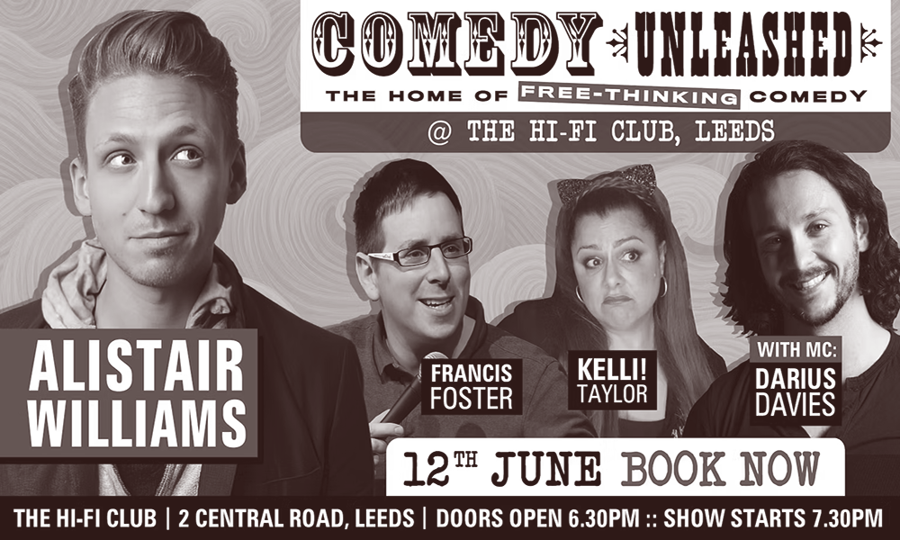 Alongside Alistair Williams will be Francis Foster, Kelli! Taylor & Darius Davies/strong> Having consistently sold out shows in London for the past 5 years, Comedy Unleashed brings more of its refreshing brand of stand-up comedy to The HiFi Club in Leeds. Comedy Unleashed nights showcase comedians who have a spirit of exploration, are counter-cultural and […]